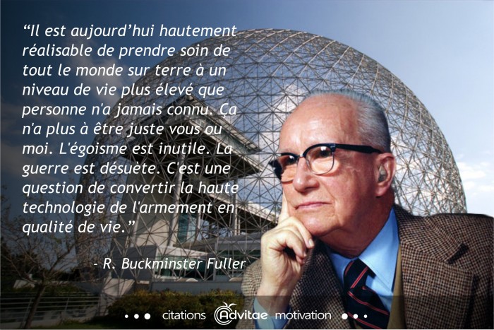 “Il est aujourd’hui hautement réalisable de prendre soin de tout le monde sur terre à un niveau de vie plus élevé que personne n'a jamais connu. Ça n'a plus à être juste vous ou moi. L'égoisme est inutile. La guerre est désuète. C'est une question de convertir la haute technologie de l'armement en qualité de vie.”
