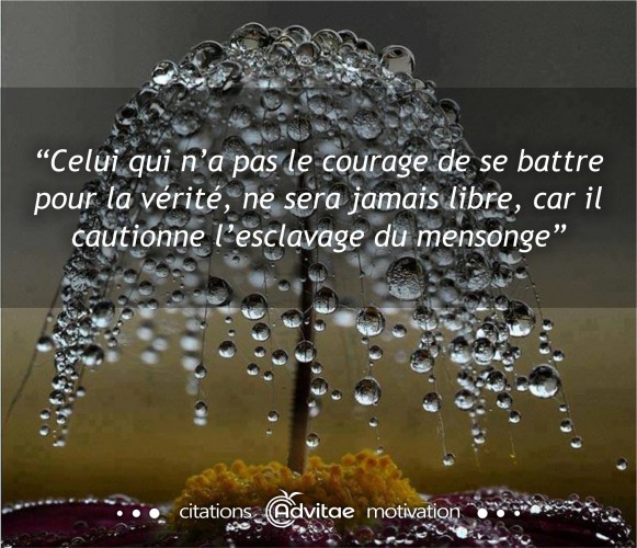 "Celui qui n’a pas le courage de se battre pour la vérité, ne sera jamais libre, car il cautionne l’esclavage du mensonge."