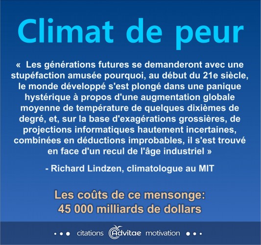 « Les générations futures se demanderont avec une stupéfaction amusée pourquoi, au début du 21e siècle, le monde développé s'est plongé dans une panique hystérique à propos d'une augmentation globale moyenne de température de quelques dixièmes de degré, et, sur la base d'exagérations grossières, de projections informatiques hautement incertaines, combinées en déductions improbables, il s'est trouvé en face d'un recul de l'âge industriel »